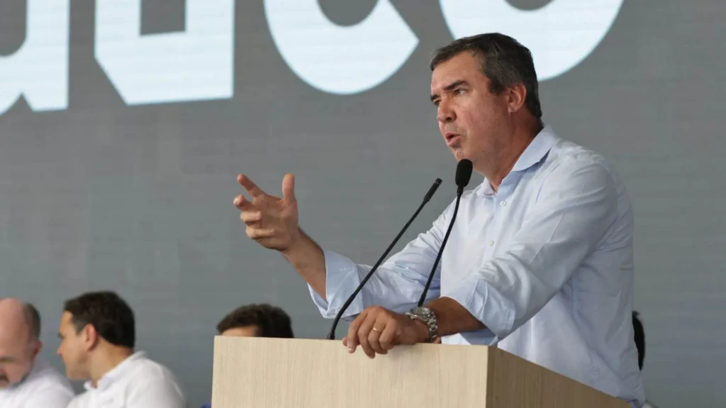 O governador de Mato Grosso do Sul, Eduardo Riedel (PP), participa nesta quarta-feira (25) da abertura da Expocanas 2026, em Nova Alvorada do Sul, a 102 km de Campo Grande.
